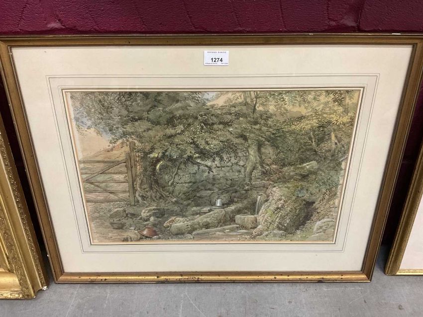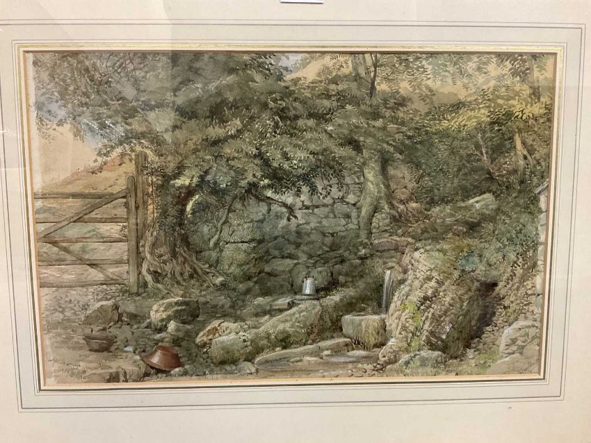 Charles Landseer (1799-1879) watercolour - rural landscape with a spring, signed, 30cm x 47cm, in glazed gilt frame