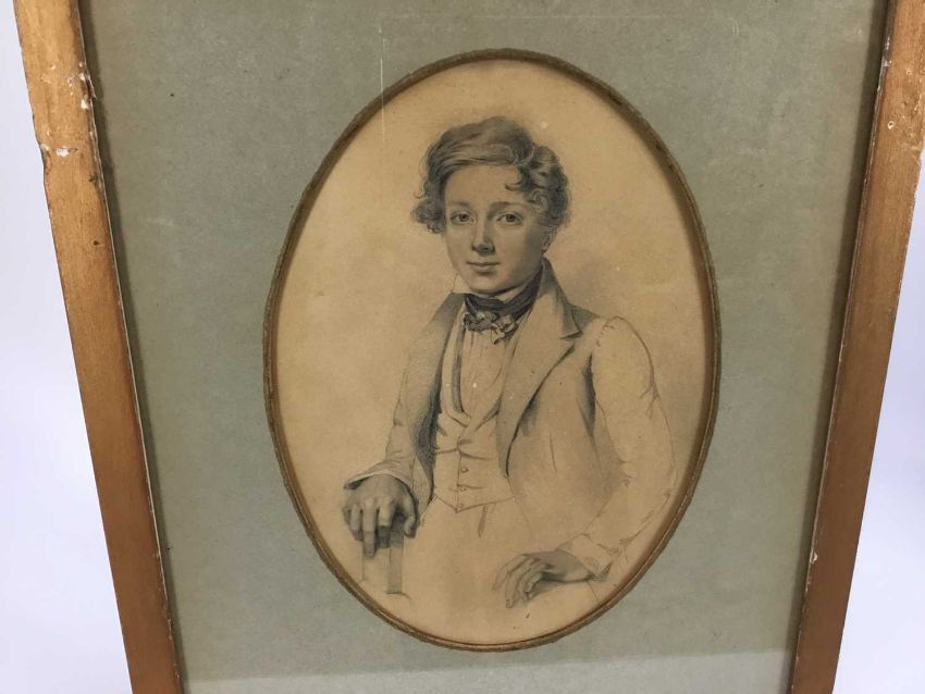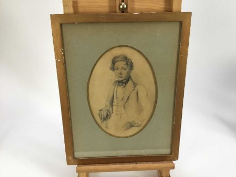 Manner of Sir George Richmond pencil on paper - Portrait of a young man of the 1820's, in oval mount in glazed gilt frame (30cm x 39cm overall)