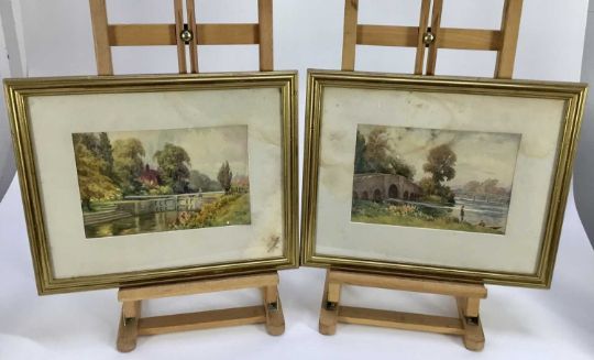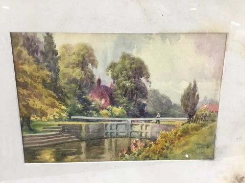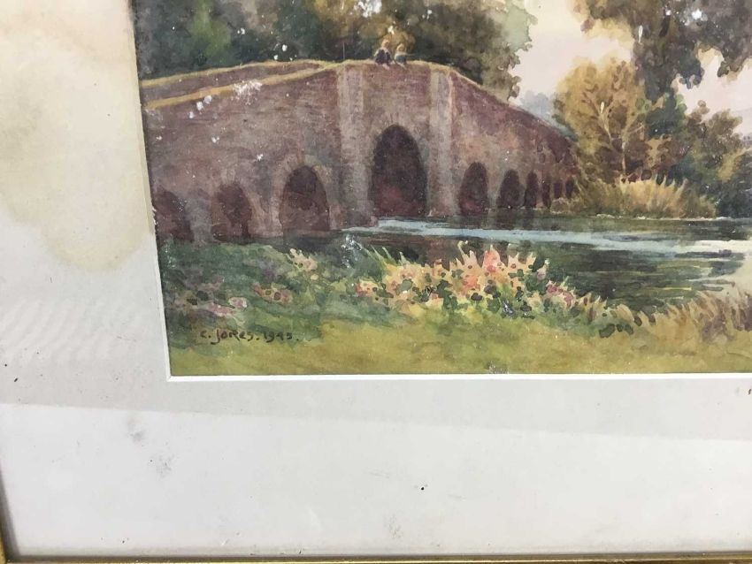 C.Jones a pair of watercolours - Canal scenes, signed, 26cm x 17cm, in glazed frames, both 42cm x 35cm overall (2)