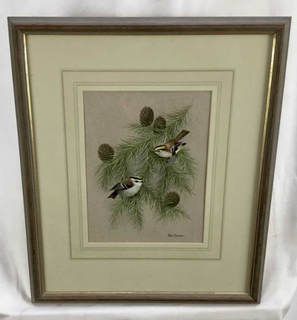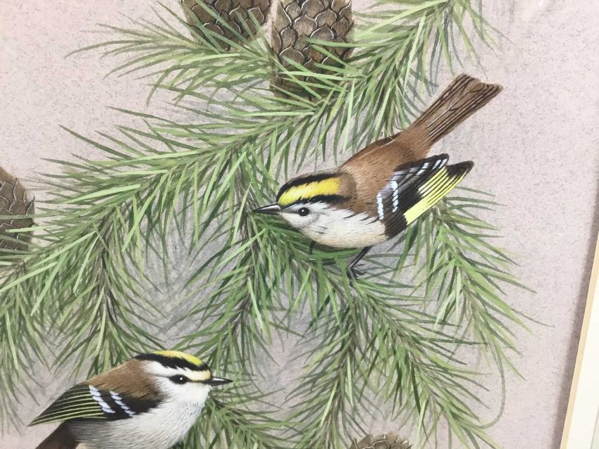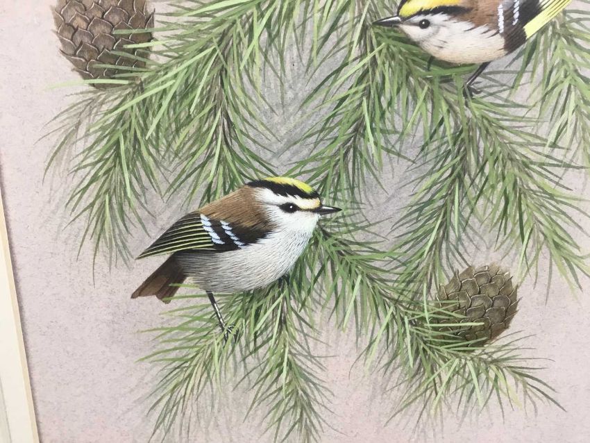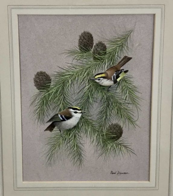 Paul Dawson 20th century watercolour - Goldcrests, signed, 20cm x 27cm in glazed frame, 43cm x 50cm overall