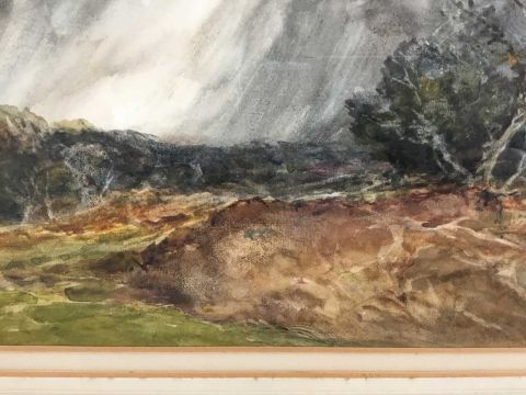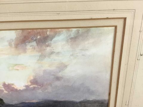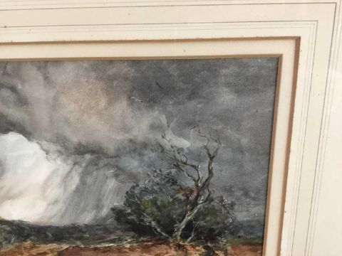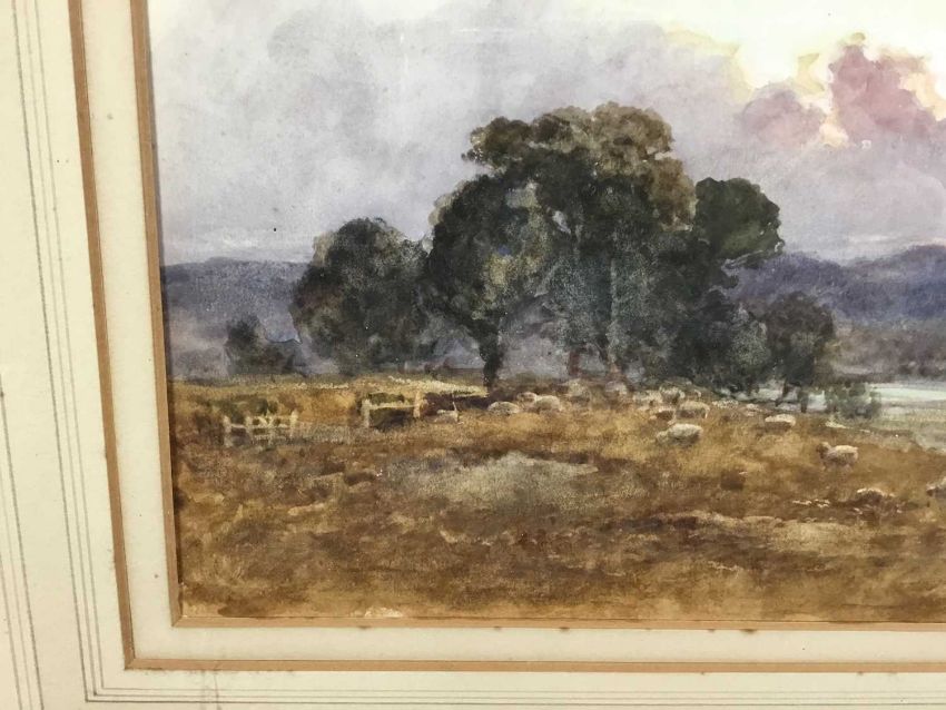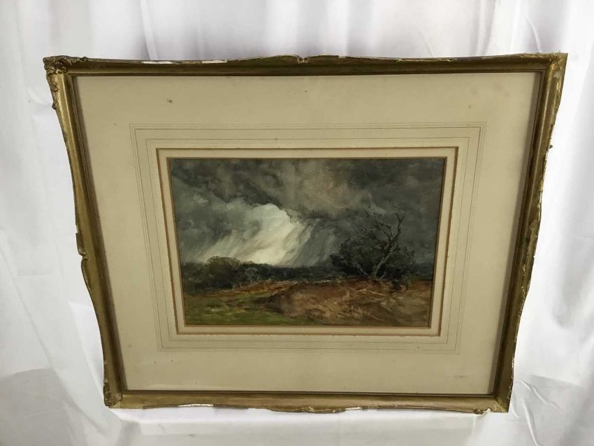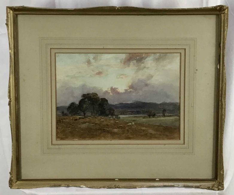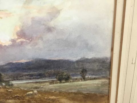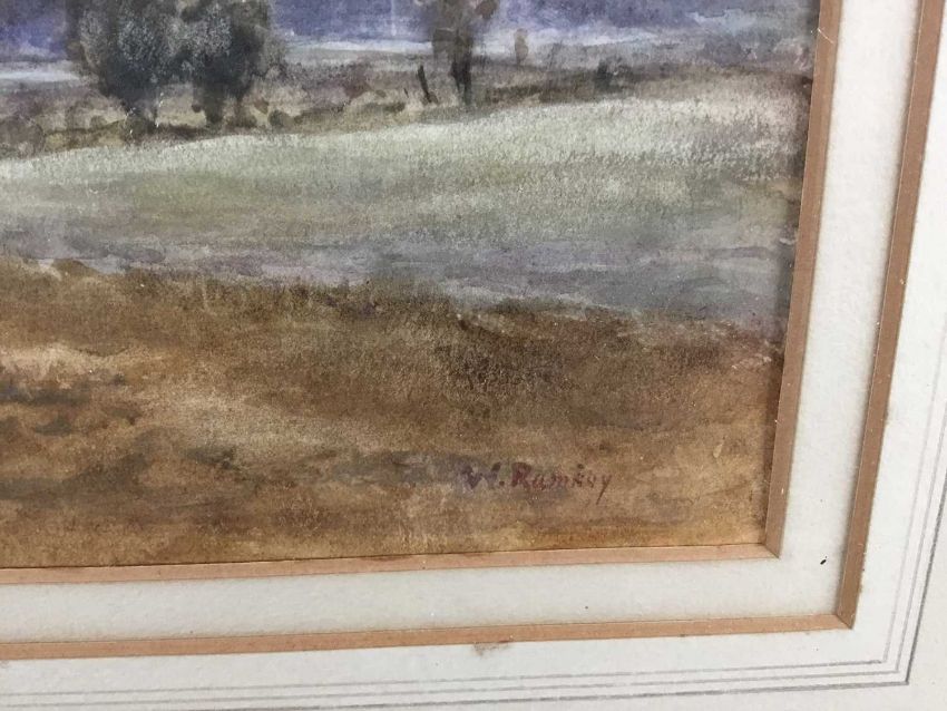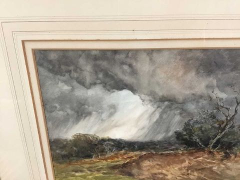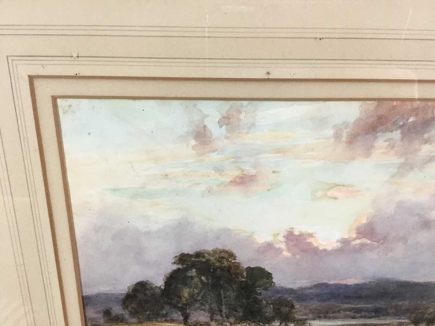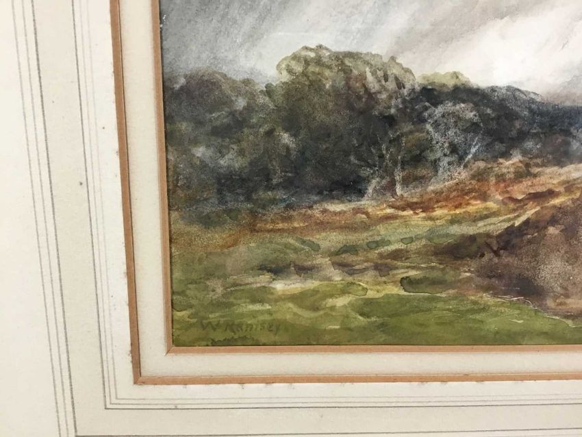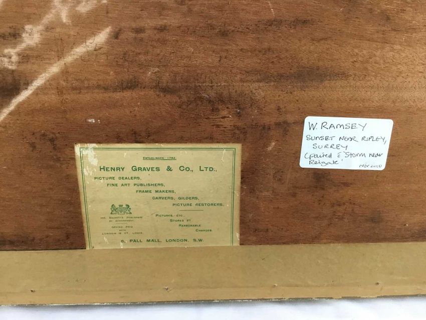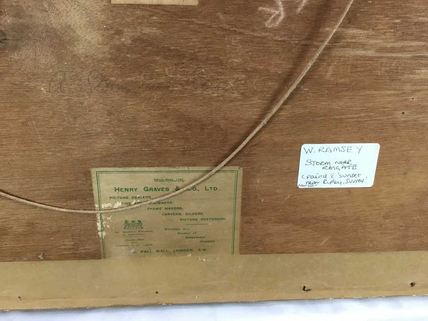 William Ramsey (late 19th / early 20th century) pair of watercolours -‘Sunset near Ripley’ and ‘Storm near Reigate’, signed, 35cm x 25cm in glazed frames, 61cm x 52cm overall (2)