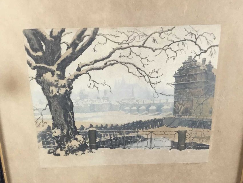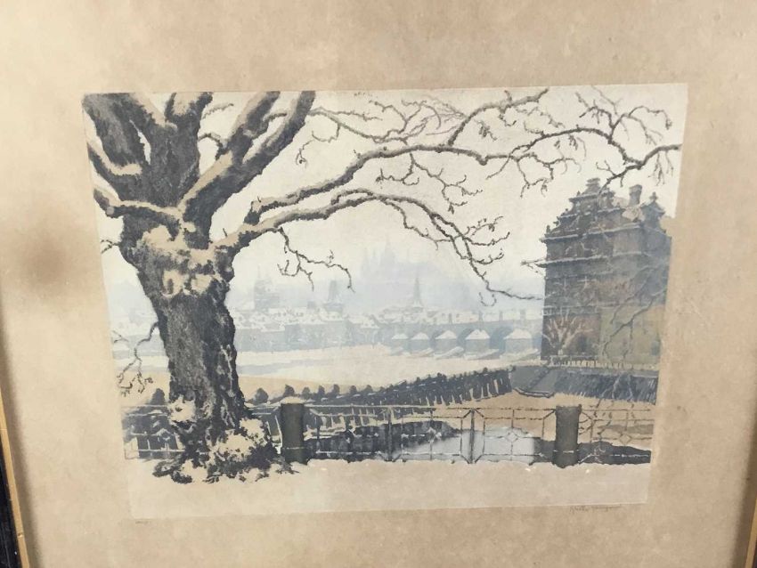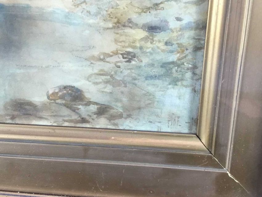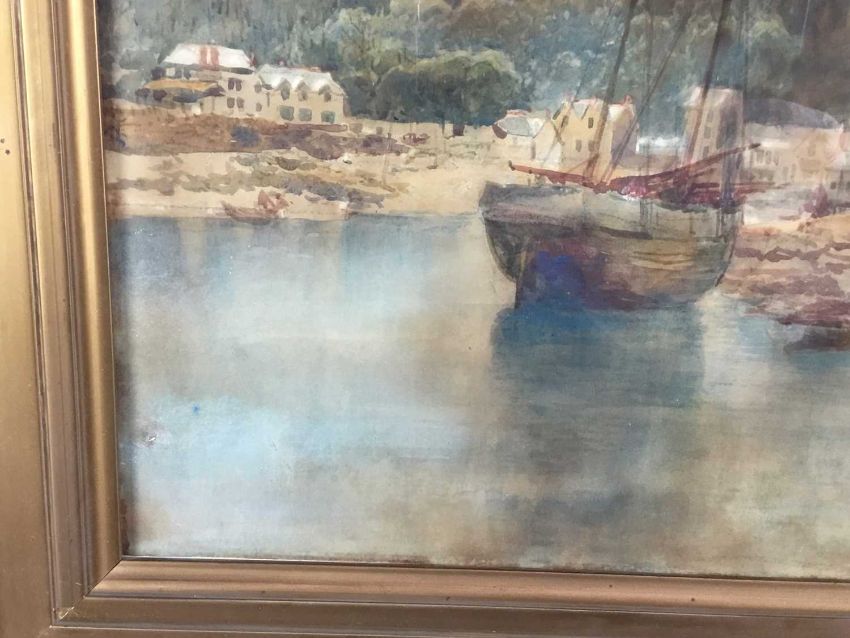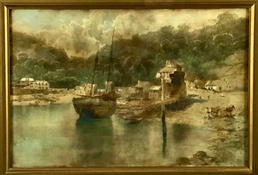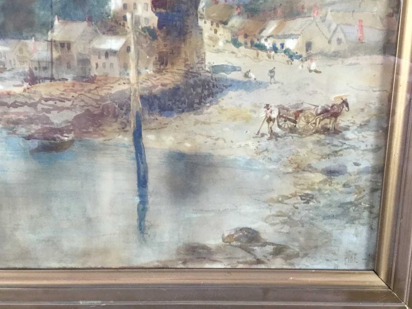 William Henry Pike watercolour - Lynmouth, signed, 48cm x 32 framed behind glass, 66cm 50cm overall, together with an indisinctly signed lithograph of a Continental cityscape, 31cm x 25cm, framed, 50cm x 45cm overall (2)