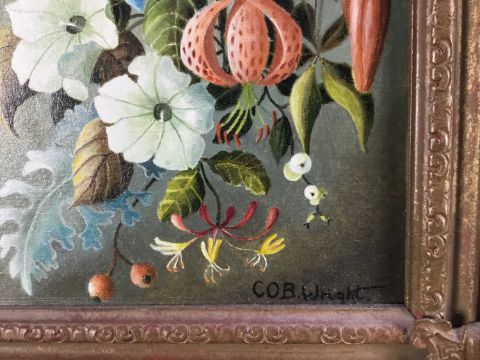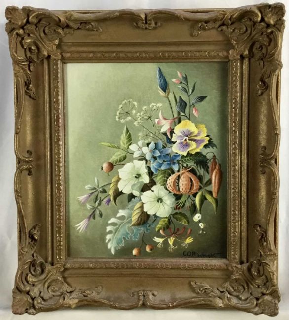 C. O. B. Wright, 20th century oil on canvas board - still life summer flowers, 24cm x 29cm, in gilt frame, 39cm x 44cm overall