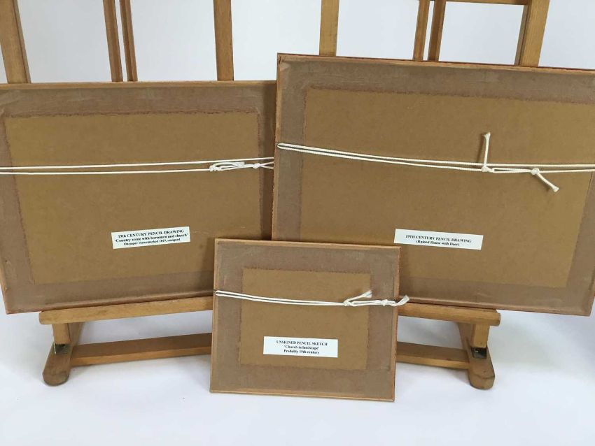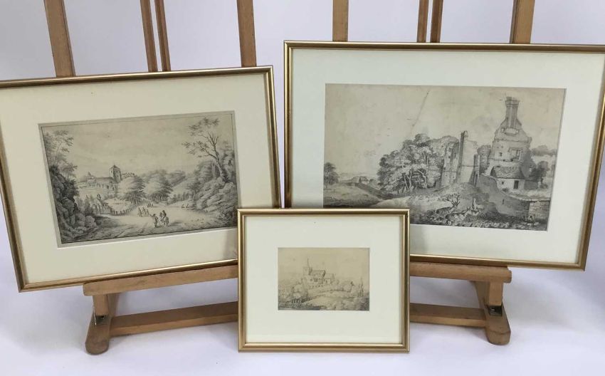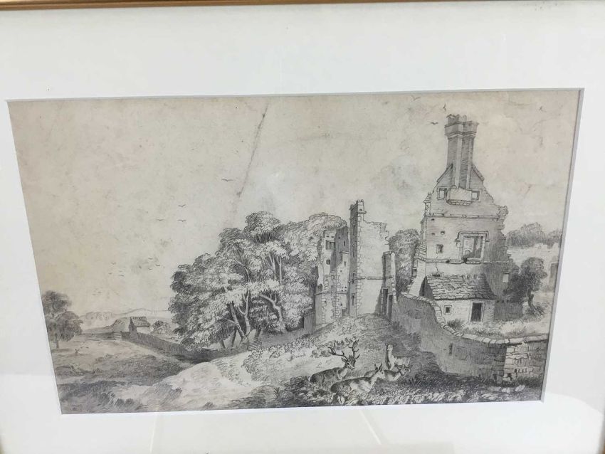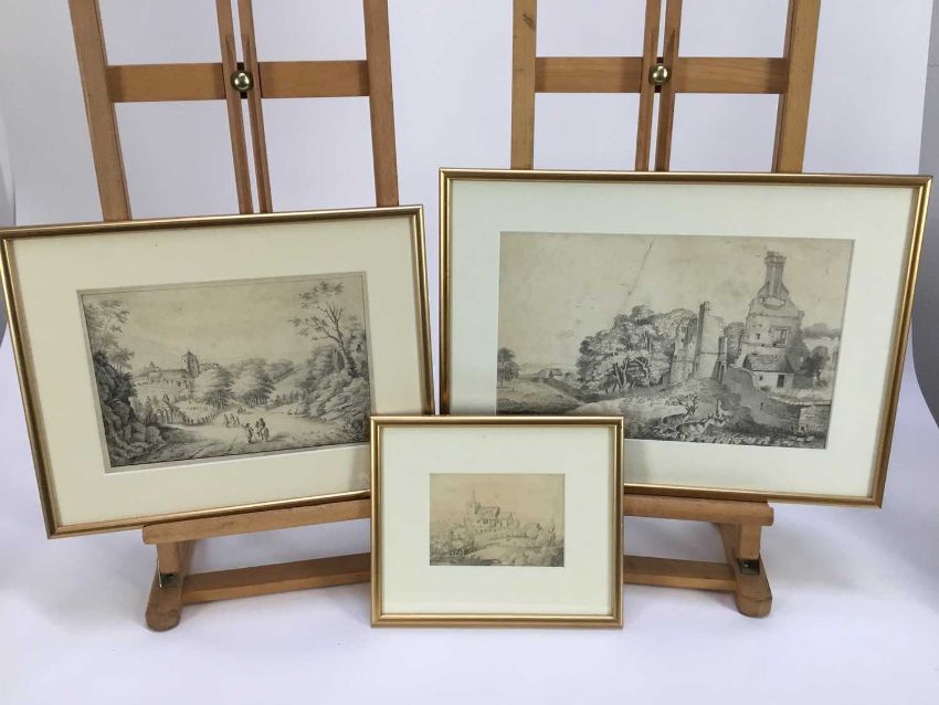 Collection of 7 framed early pencil drawings, to include John Wodderspoon - various of castles, cottages etc., the largest drawing 32cm x 20cm, the smallest 13cm x 10cm (7)