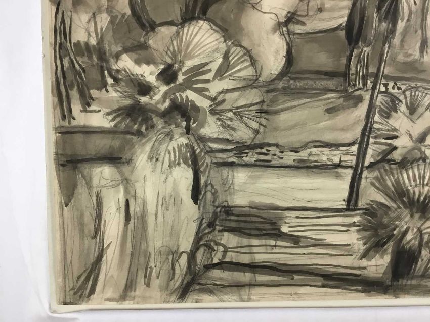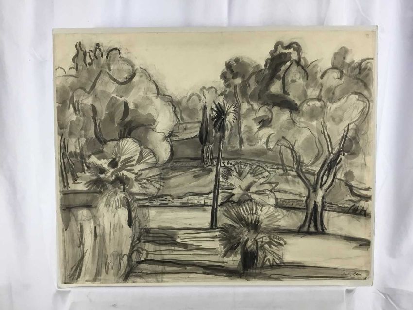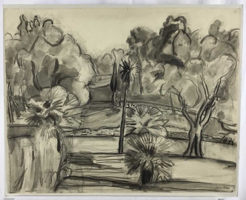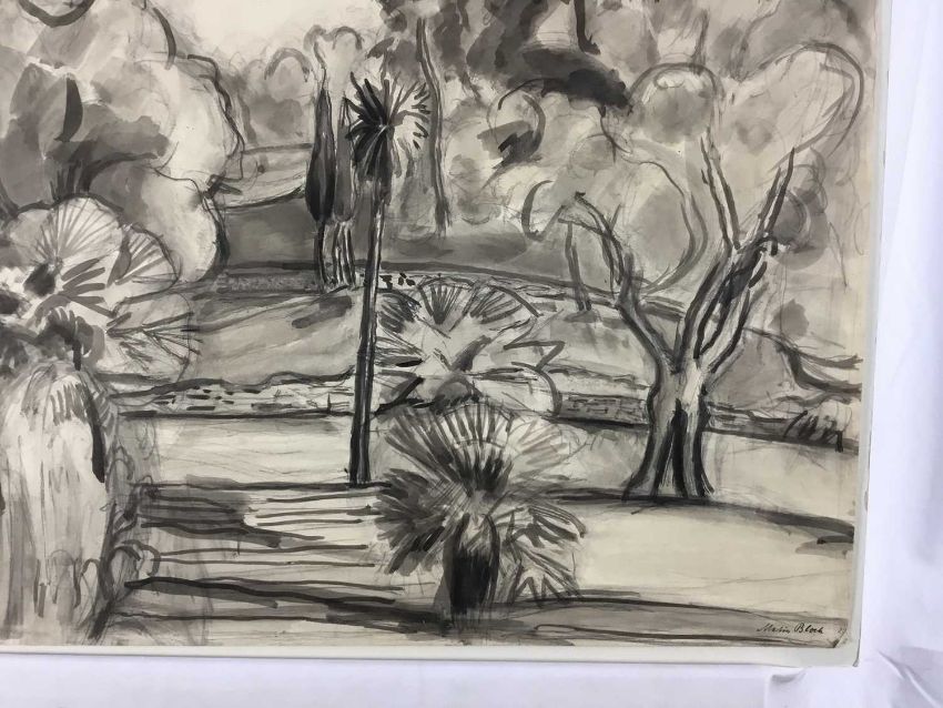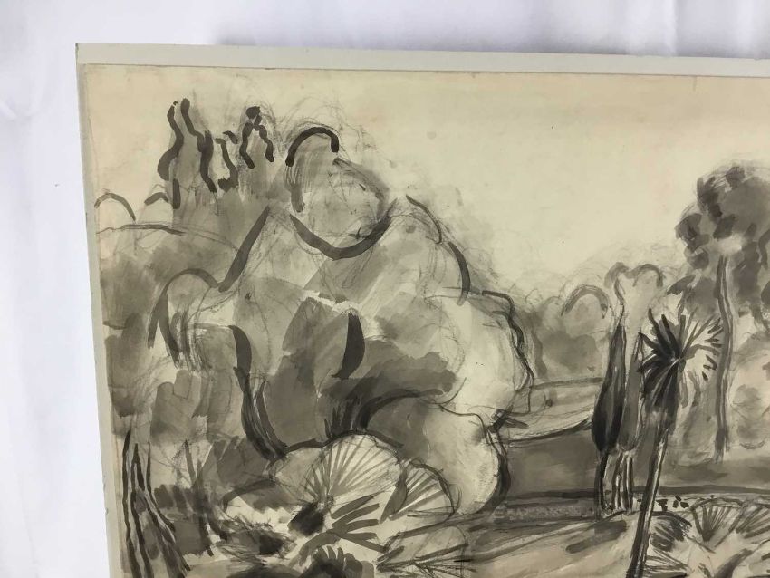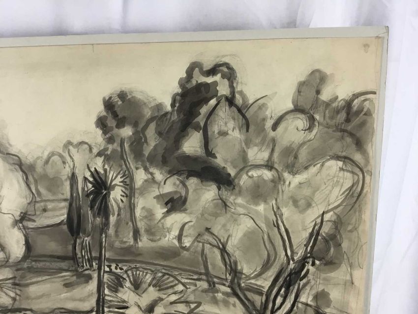 Martin Bloch (1883-1954) monochrome wash on paper - trees, 57cm x 45cm unframed