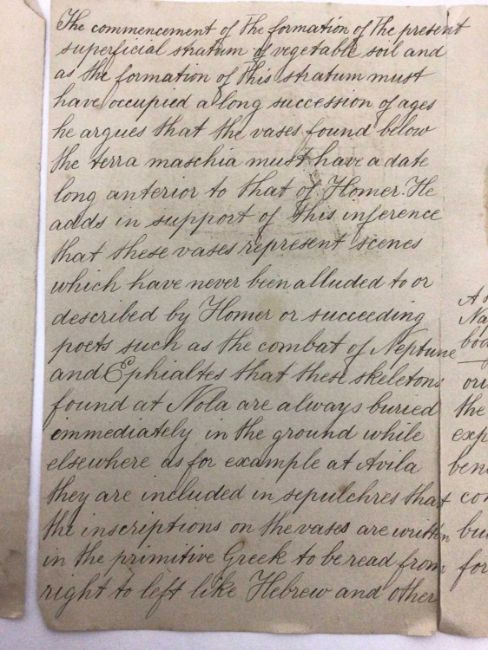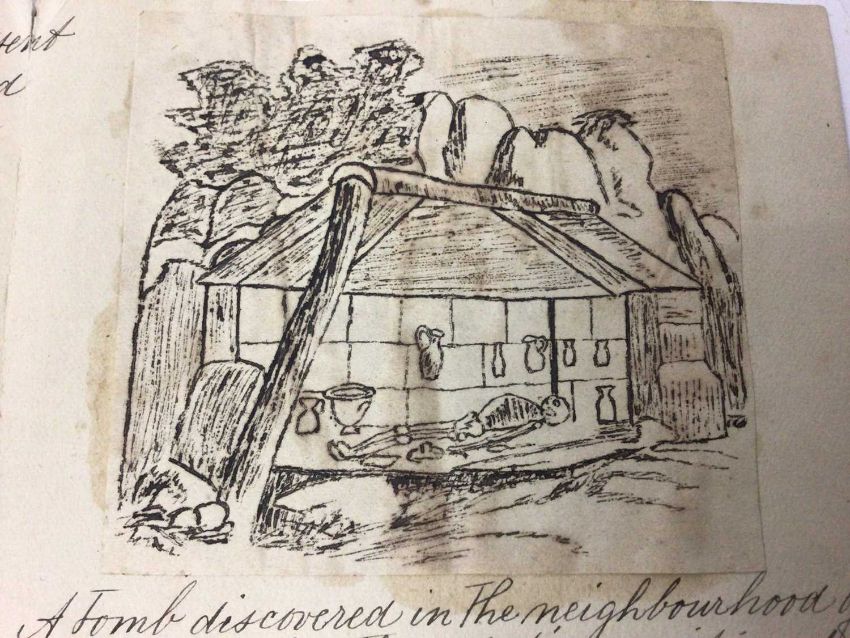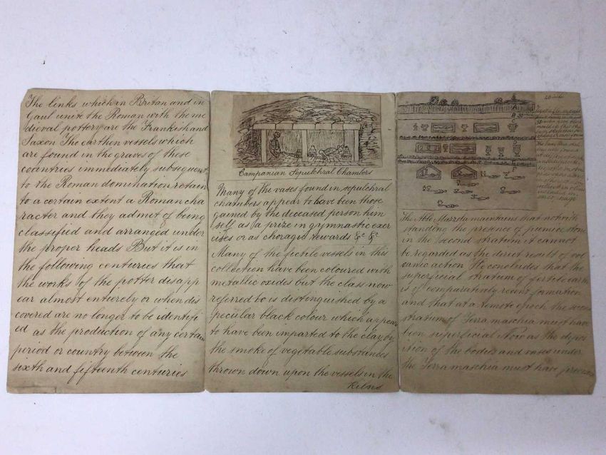 19th century pen and ink hand inscribed descriptions of antique burial chambers