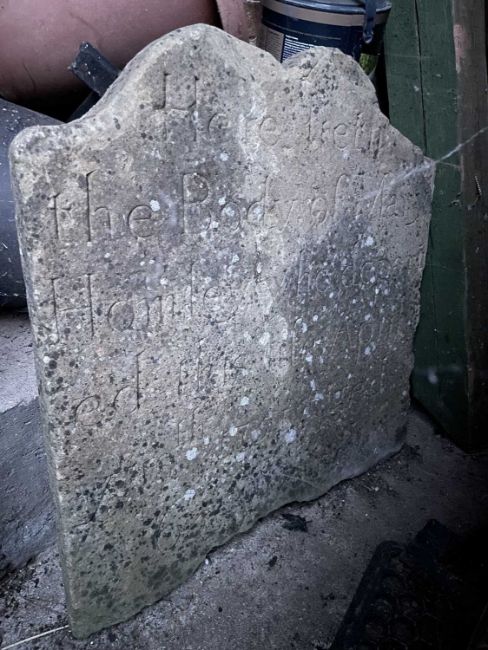 Mid 18th century carved gravestone, the substantial carved stone of arched form, engraved: 'Here Lyeth the body of Mary Homley who departed this life April 18th 1751 aged 65 years'