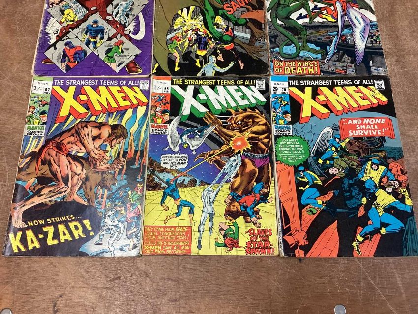 Marvel Comics The Uncanny X-Men #46 (1968) (American Price Variant) Juggernaut and Foggy Nelson appearances + Origin of Iceman continues. X-Men #60, #61, #62 (1969) First and second appearance of Sauron, Magneto and Ka-Zar appearances in a story set in the Savage Land + Angel gets 'new' costume, Neal Adams cover and interior art. X-Men #65 (1970) (UK Price Variant) Professor X returns + Fantastic Four, Havok, Polaris appearances - Neal Adams interior art. X-Men #70 (1971). Six Comics in total.