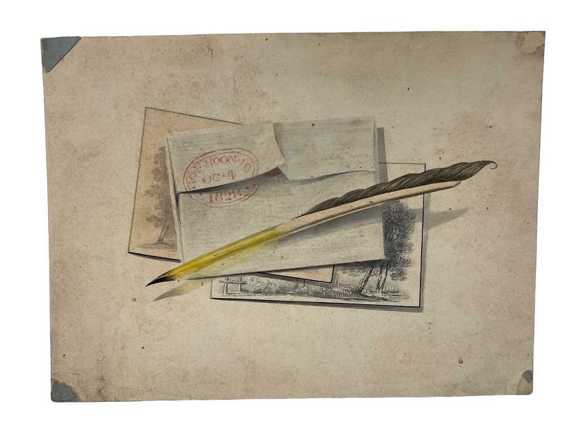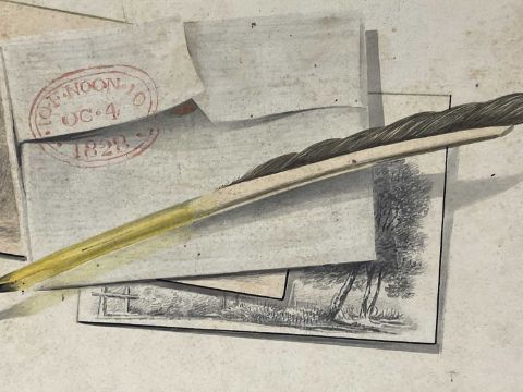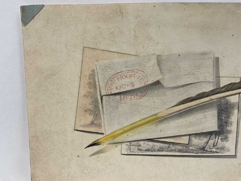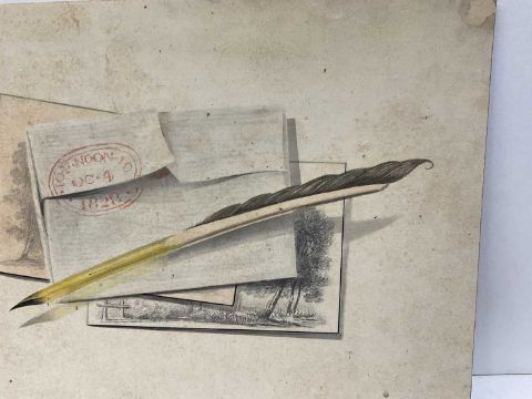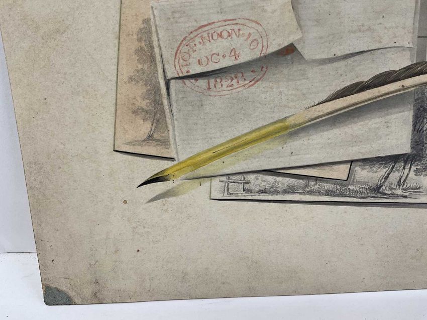Regency Trompe l'oeil watercolour, 17 x 23cm
