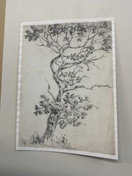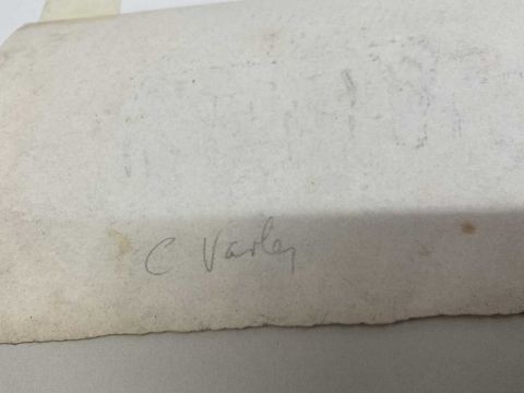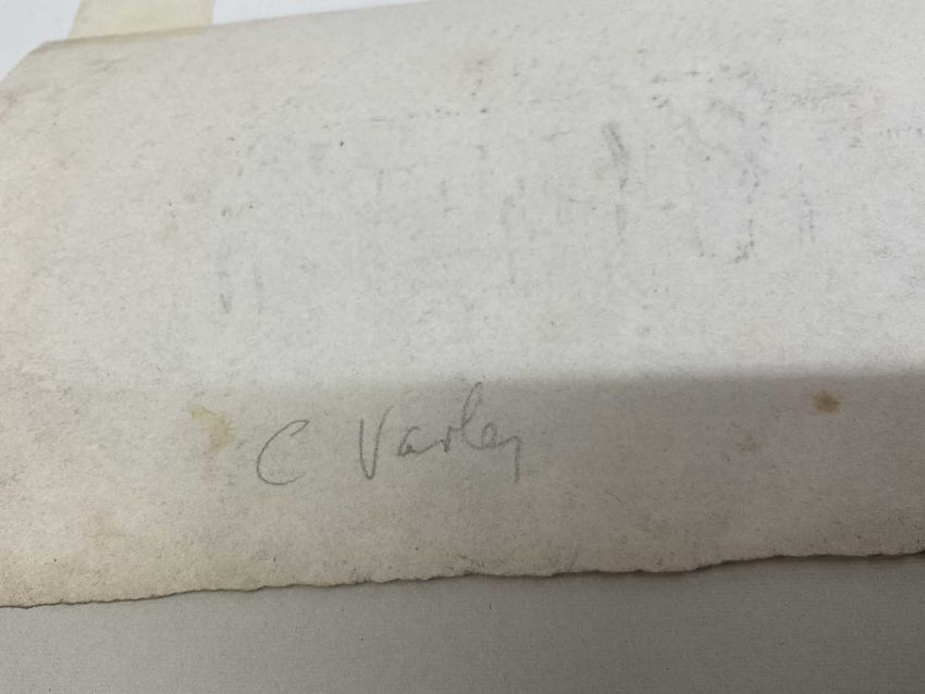 Attributed to Cornelius Varley (1781-1873) pencil, tumble down farm building, inscribed C Varley to rear, 12 x 19cm, together with a similar sketch and another of a tree possibly by Varley, all mounted but unframed. (3)