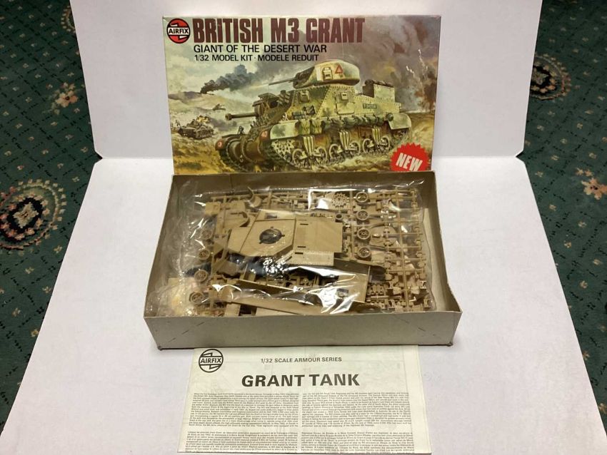 Airfix 1;35 Scale Series 7: M6 Anti-Tank Gun Carriage No.7361, 1;32 Scale Series 8: British M3 Grant medium tank No.8365, Series 6: 17 Pounder Gun no.6361 & Series 6: 1910 "B" Type Bus No.6443, all boxed (4)