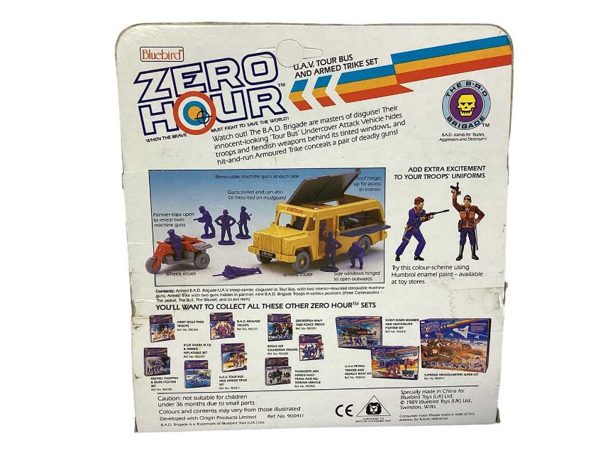 Bluebird (c1989) Zero Hour (when the brave must fight to save the World!) The BAD Brigade U.A.V. "Tour Bus" & Armed Trike Set, boxed (2)
