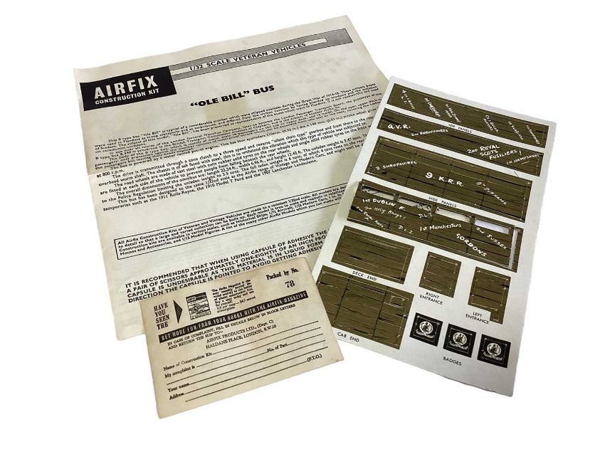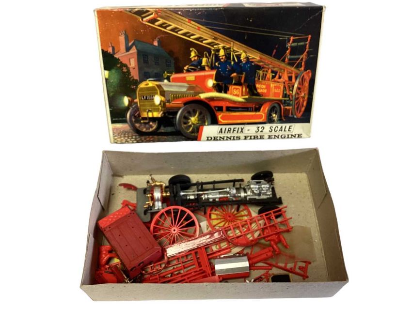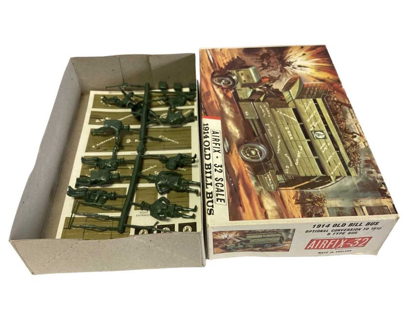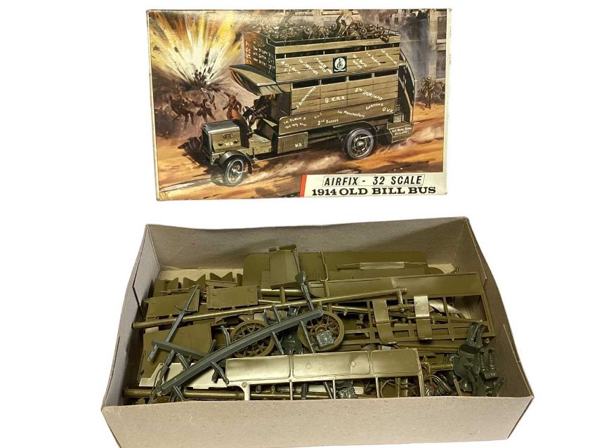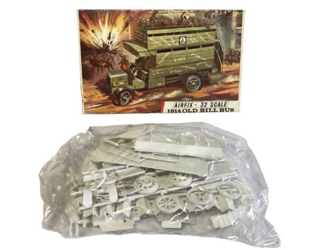 Airfix 1:32 Scale Red Stripe Series 5 1914 Old Bill Bus (Green Plastic Version) & Series 5 1914 Old Bill Bus (with Optional Conversion to 1910 B Type Bus) and Red Stripe Series 5 1914 Dennis Fire Engine (Part Constructed & Painted), all boxed (3)