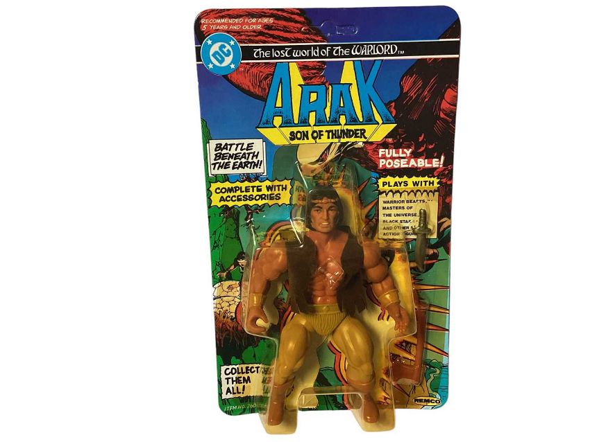 Remco DC Comics (c1982) The lost World of the Warlord 5 1/2" action figures including Mikola, Arak, Demos & Machiste, all on unpunched card with bubblepack No.260 (4)
