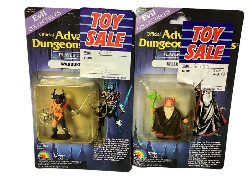 LJN (c1983) Advanced Dungeons & Dragons Evil Collectibles 2" action figures including Zarak, Skylla, Kelek & Warduke, plus Good Collectibles Elkhorn & Ringlerun, all on card with bubblepack (6)