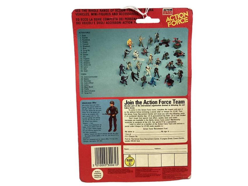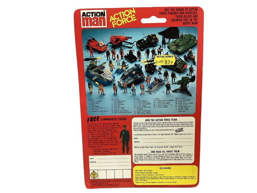 Palitoy Action Man Action Force Cobra & Red Shadow (Three Versions) (x3), on card with blister pack (4)