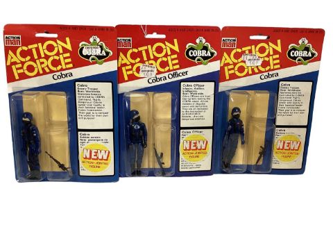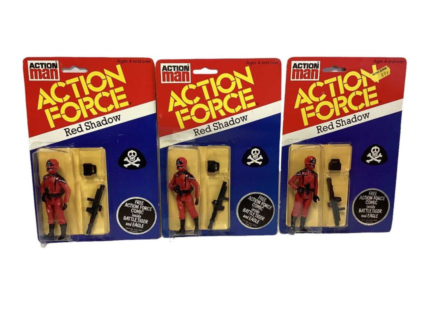 Palitoy Action Man Action Force Cobra Officer, Cobra (x2) & Red Shadow (Black Glove Version) (x3), on card with blister pack (6)