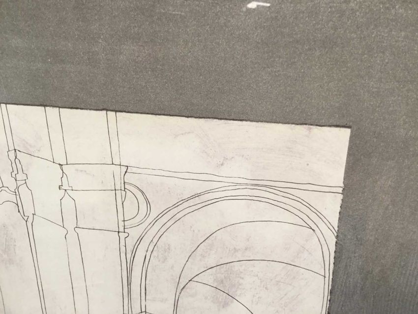 Ben Nicholson, 1960s-1970s print entitled verso "Urbino, Footsteps in the Dust", 62cm x 48cm, in glazed gilt frame