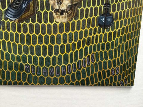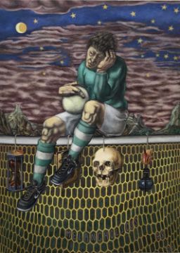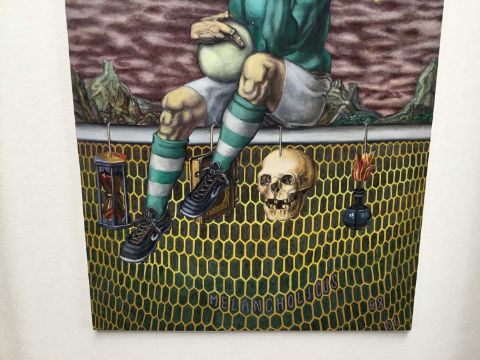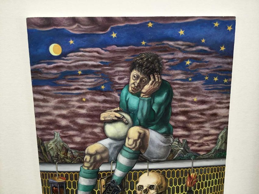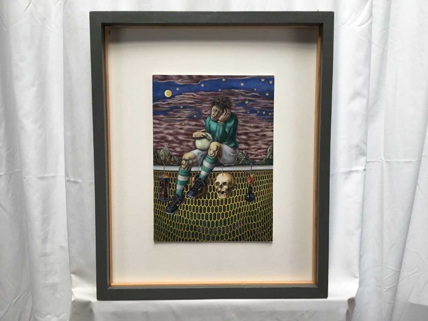 Allan Salisbury 'SOLS' (b.1949) oil on panel - 'The Art of Goalkeeping, Melancholicus', signed with initials, dated '06, Royal Cambrian Academy label verso, 33cm x 23cm, mounted in box frame