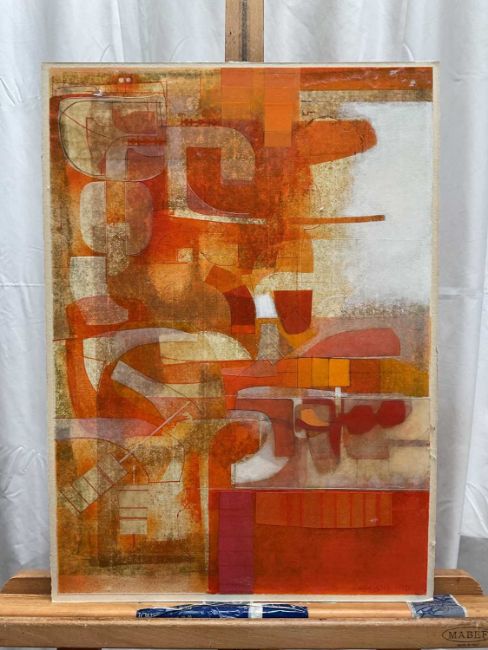 Continental School, set of three abstract mixed media pictures, indistinctly signed, 50cm x 40cm