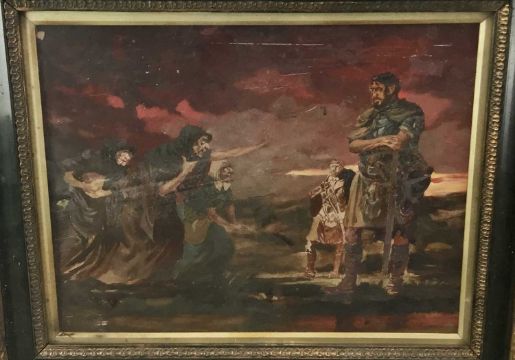 Continental school, oil on board - The Three Witches, 35cm x 45cm, in glazed frame
