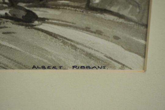 Albert Ribbans (1903-1966) watercolour - Fishing scene, monochrome, 27cm x 38cm, signed and framed