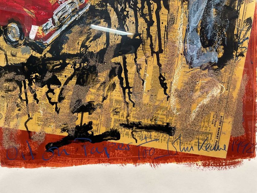 John Keane (b.1954), pair of limited edition prints with collage and oil, framed and glazed - one entitled Satellite City, A/P, 1993, the other entitled Oil On Paper, 41/100, 1992, both 105cm x 78cm,