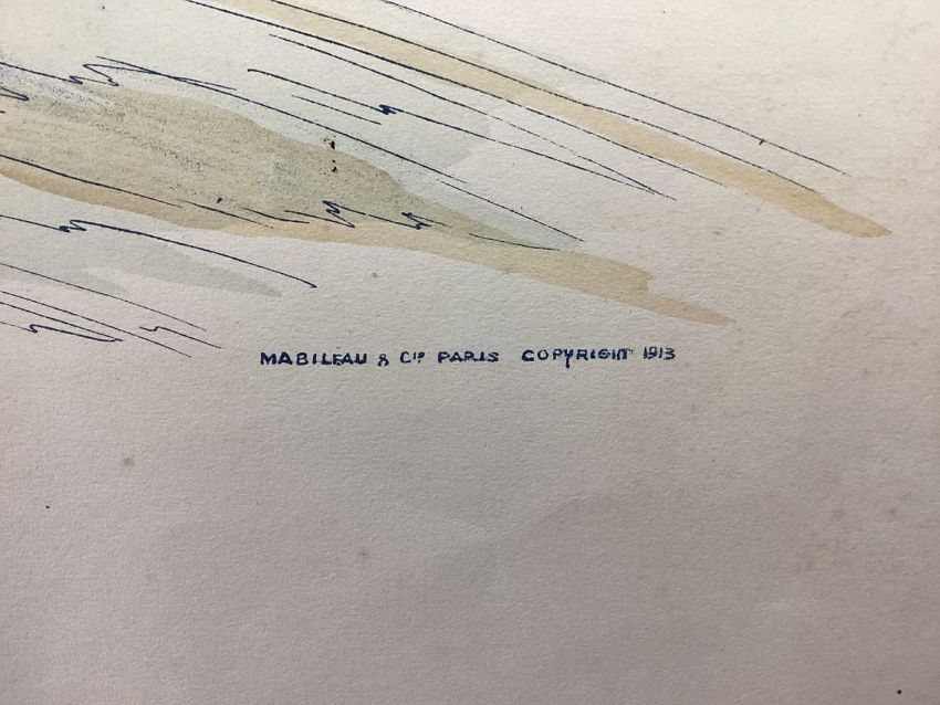 The paper has not been laid down, the colours are good and strong. Some discolouration to the outer paper margins and a loss top right as per the images. A good image.