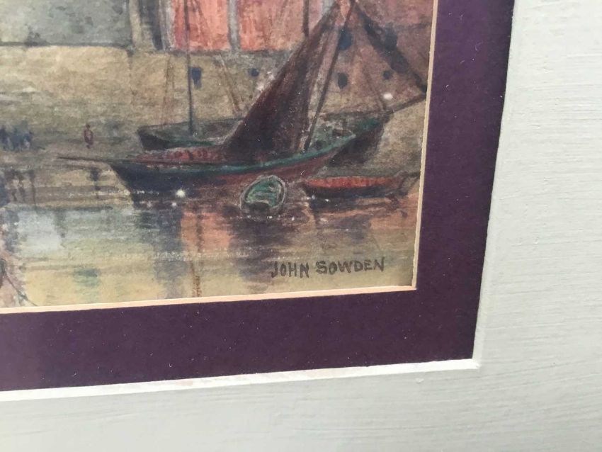 John Sowden (1838-1926) signed watercolour 1909 - Whitby East Cliff, 18cm x 12.5cm, in glazed frame