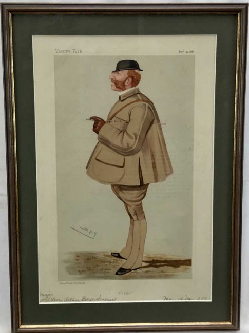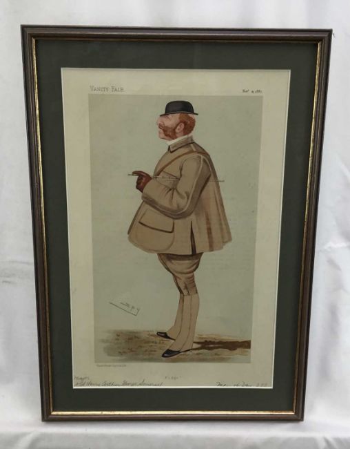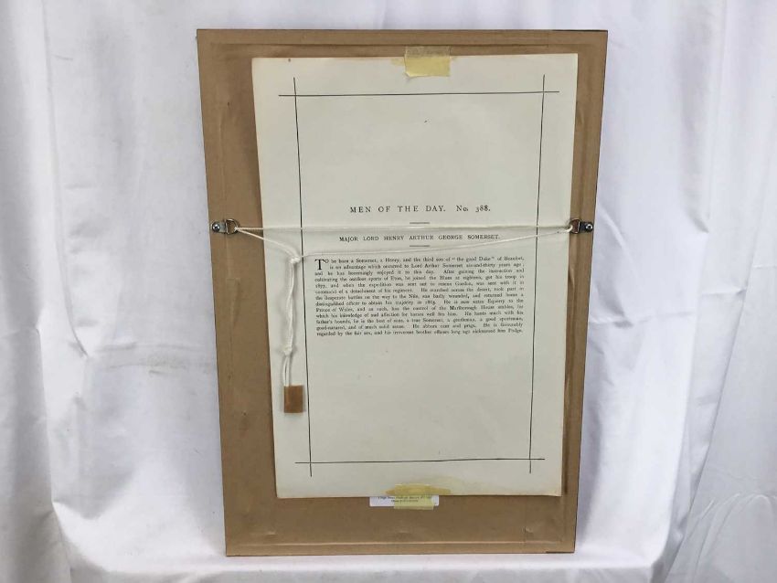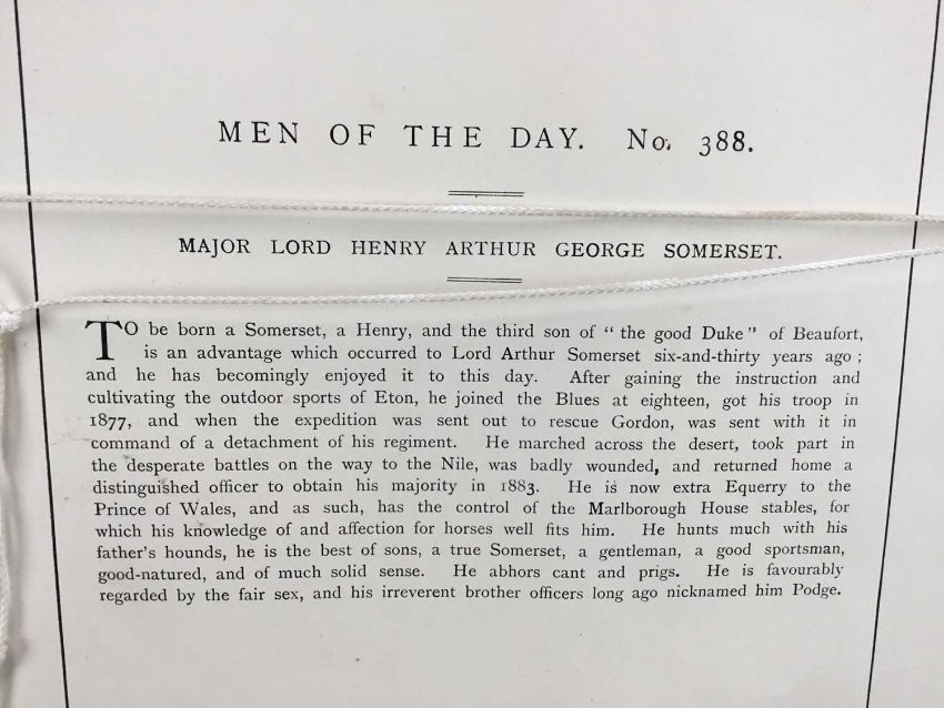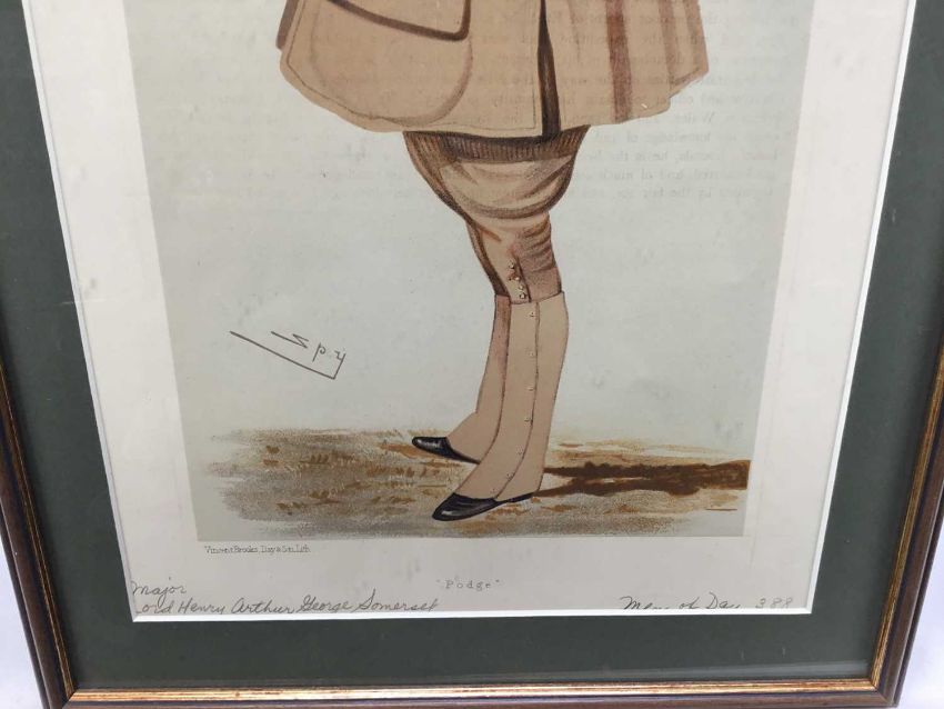 Victorian Vanity Fair Spy print - Major Lord Henry Arthur George Somerset, "Podge", 37cm x 24cm, in glazed frame