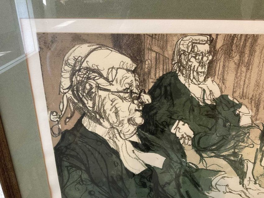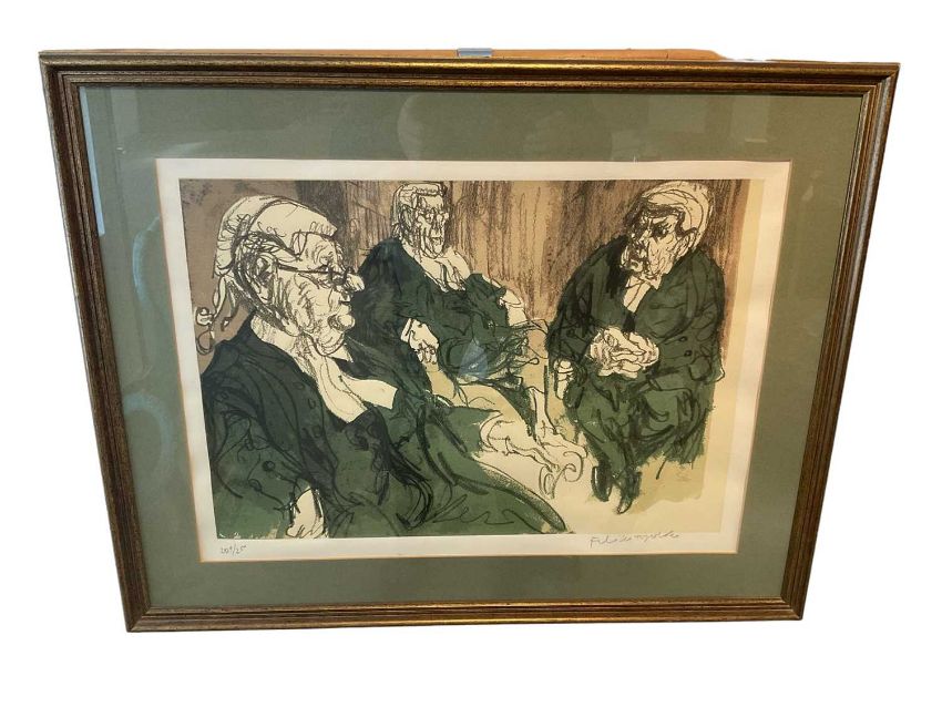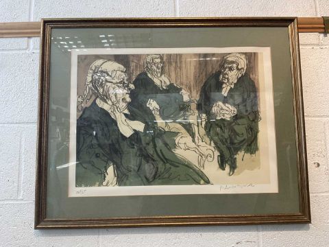 Felix Topolski (1907-1989) screenprint, Three court of appeal judges, signed, numbered 209/250, 39 x 53cm, glazed frame