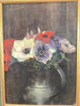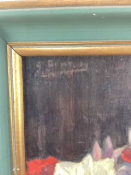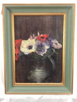 French School 20th century, oil on board, flowers in vase, signed and dated indescinctly top left, 36 x 26cm, framed