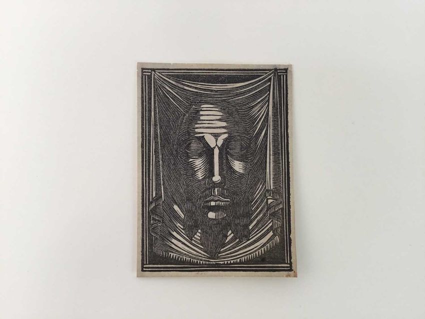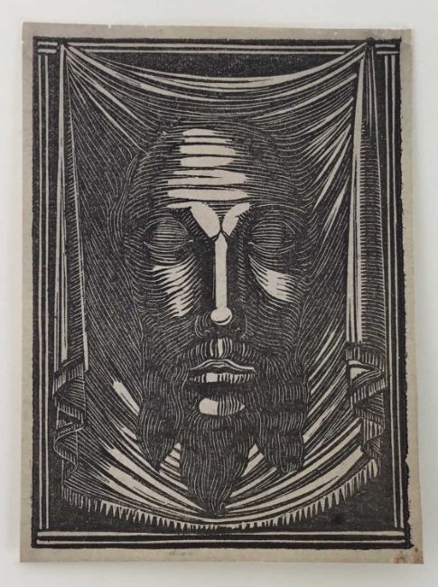Eric Gill (1882-1940) wood engraving, The Holy Face 1917 (Skelton P111) 7.5 x 5.6cm. Provenance: Gifted by Gill to his Chaplain, Dr. Flood