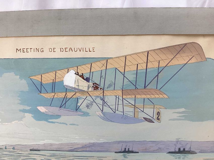 Marguerite Gamy (1883-1936) hand coloured lithograph - 'Meeting De Deauville', published 1913, 44cm x 89cm, mounted