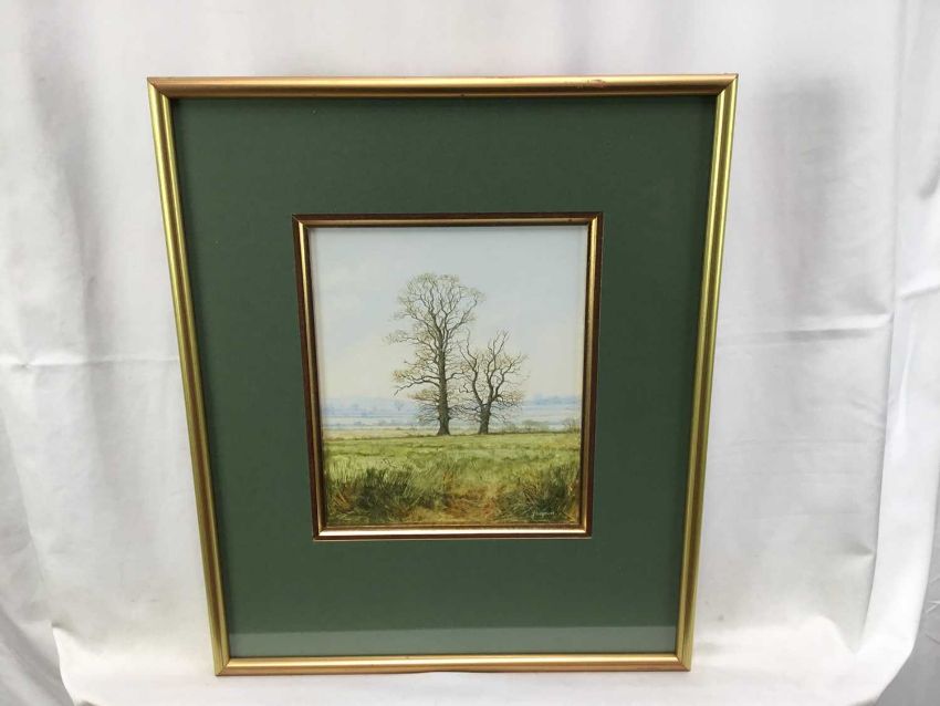 John Ridgewell (1937-2004) mixed media - Two Trees, Stoke by Nayland, signed, inscribed verso, 20.5cm x 17.5cm, in glazed gilt frame