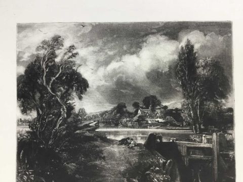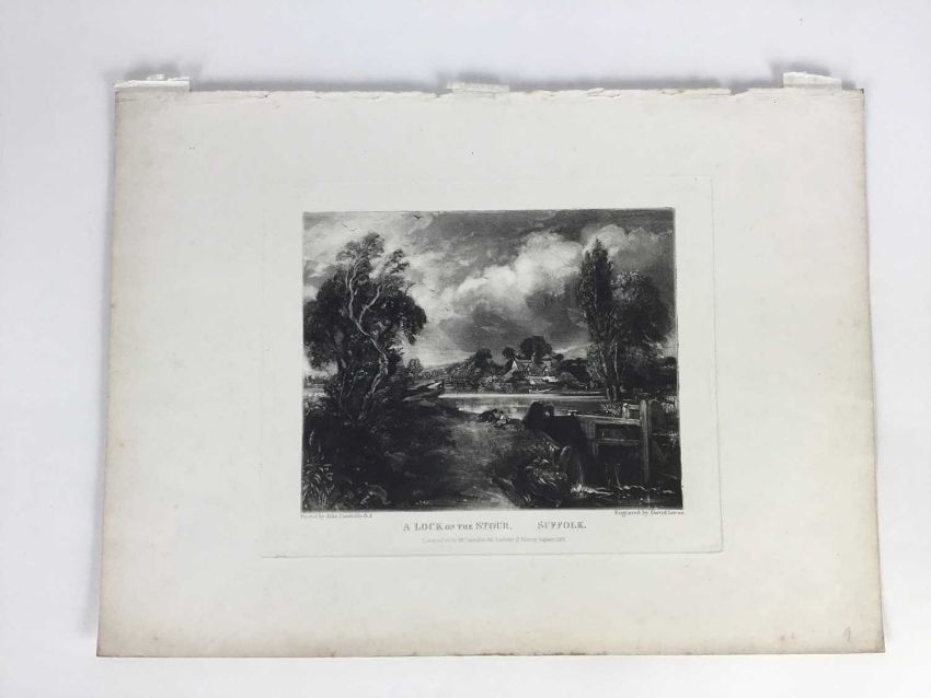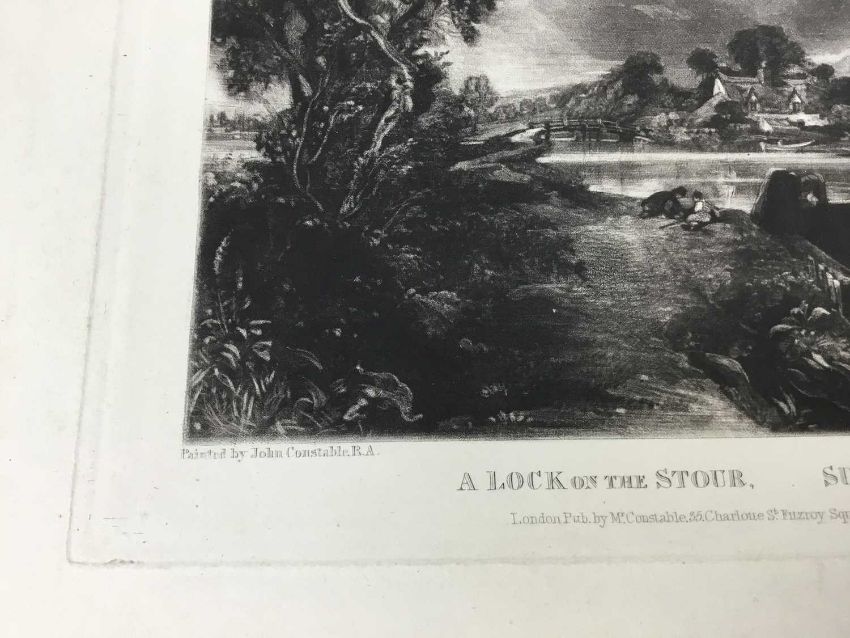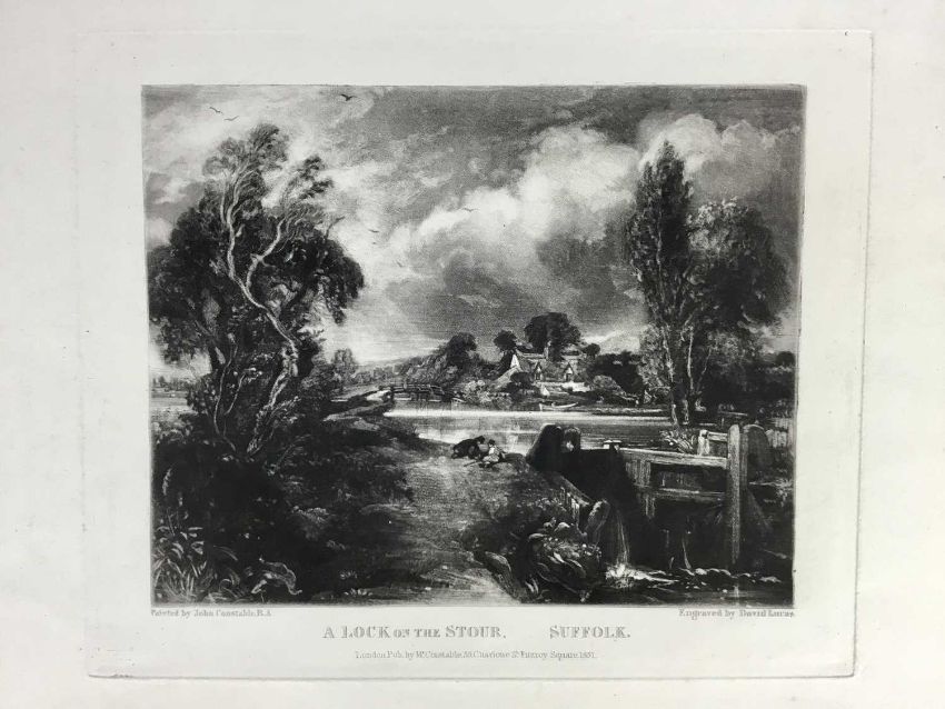David Lucas after John Constable RA., mezzotint "A Lock on the Stour", published by Mr Constable, Charlotte Street, London 1831, 27cm x 36cm overall, unframed