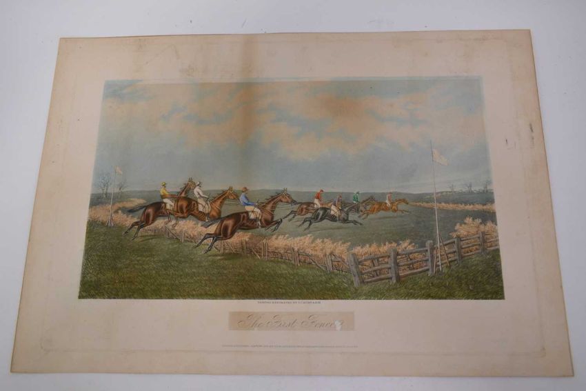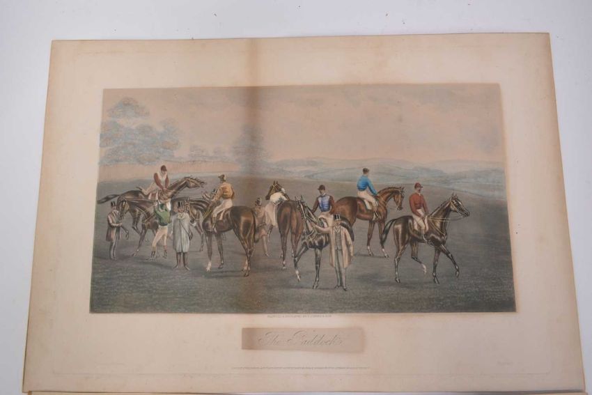 Set of six Victorian hand coloured Racing engravings after G. C. Hunt, published by McQueen 1877, unframed, 33cm x 48cm