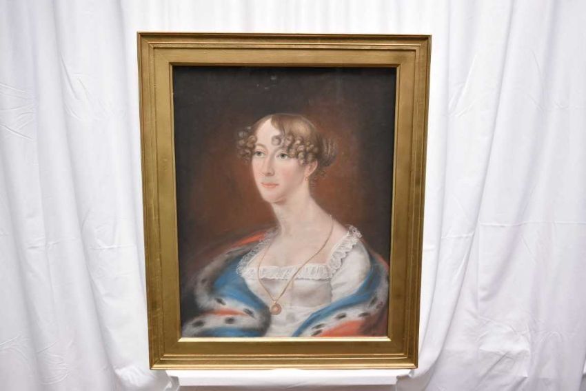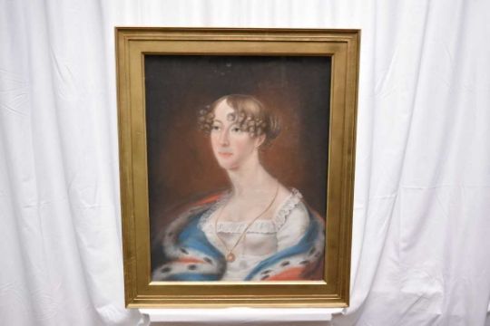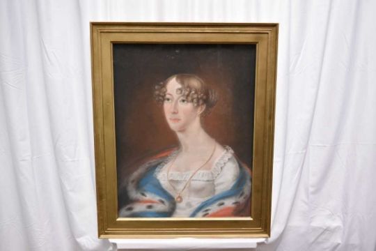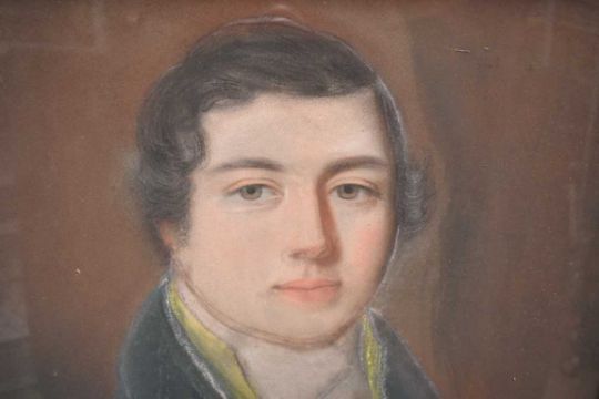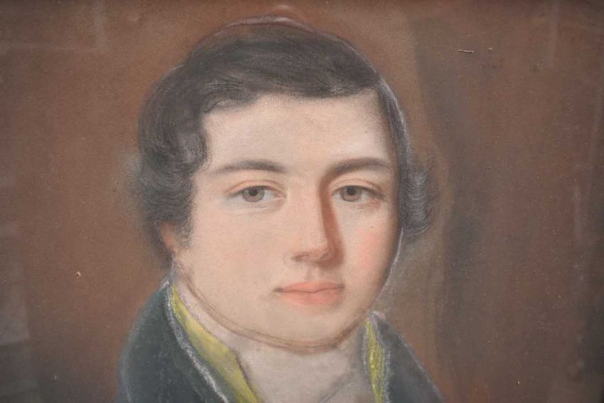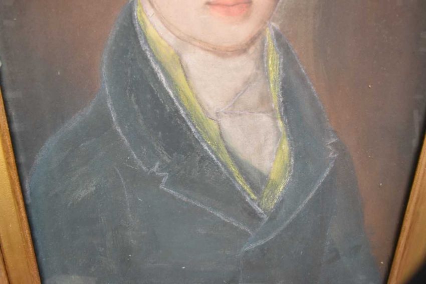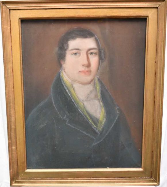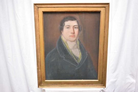 English School, 19th century, pair of pastels on paper - Portrait of a Lady and Gentleman, 61cm x 48cm, in glazed gilt frames