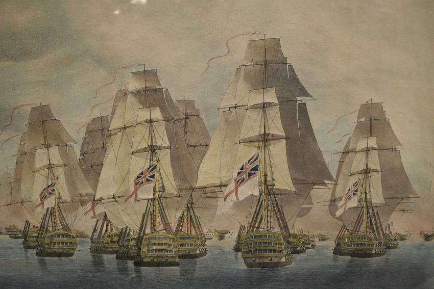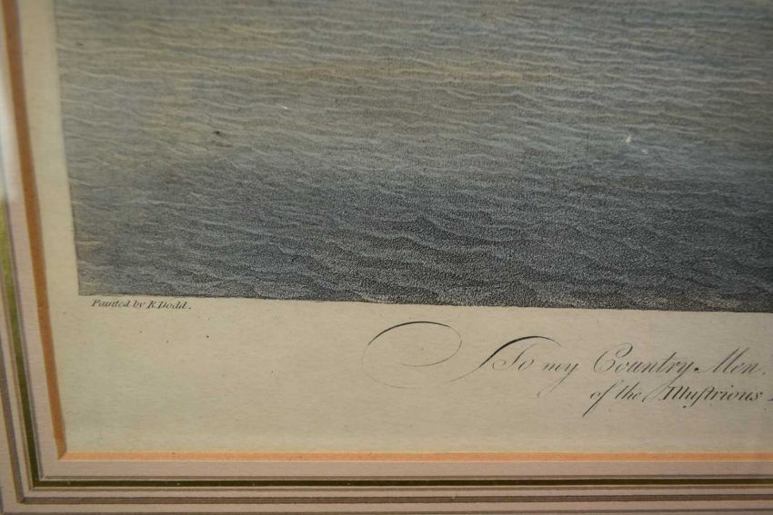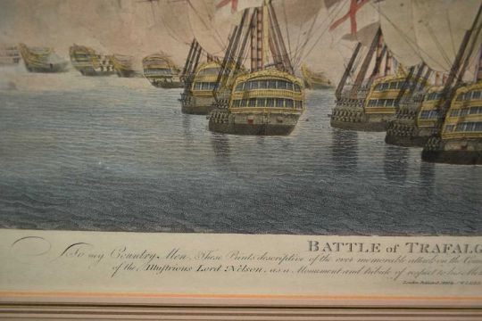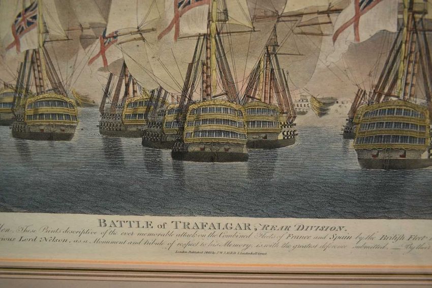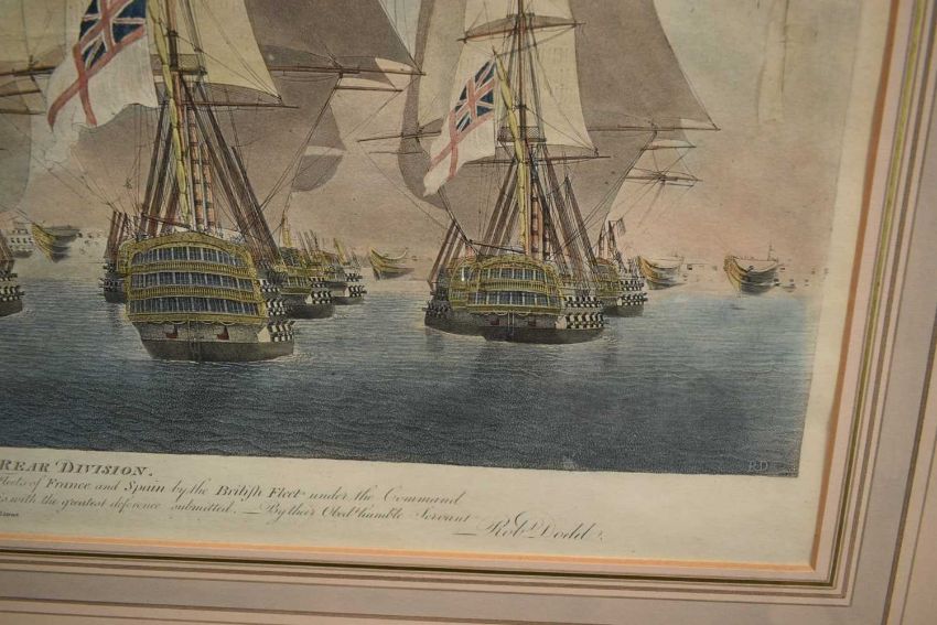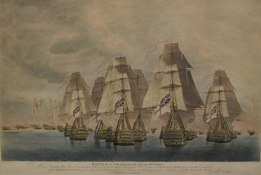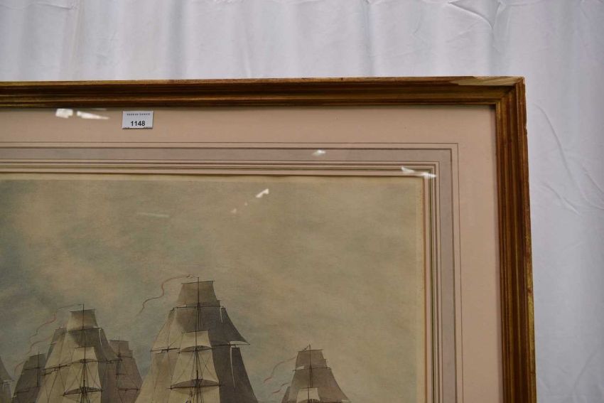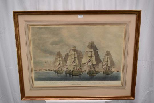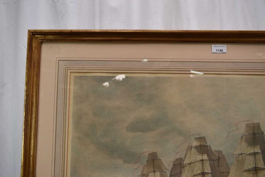 After R. Dodd, mid 19th century hand coloured engraving - 'Battle of Trafalgar, Rear Division', published London 1843 by J W Laird, Leadenhall St., 49cm x 74cm, in glazed gilt frame