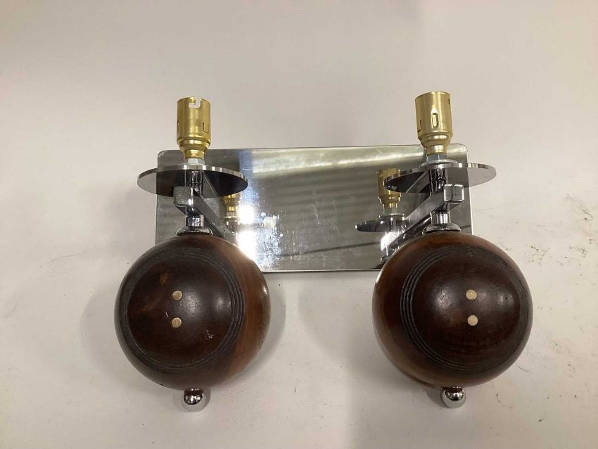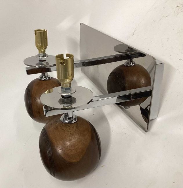 Twin Bowling Ball silver wall sconce, 11cm x 27cm mount, 17cm deep