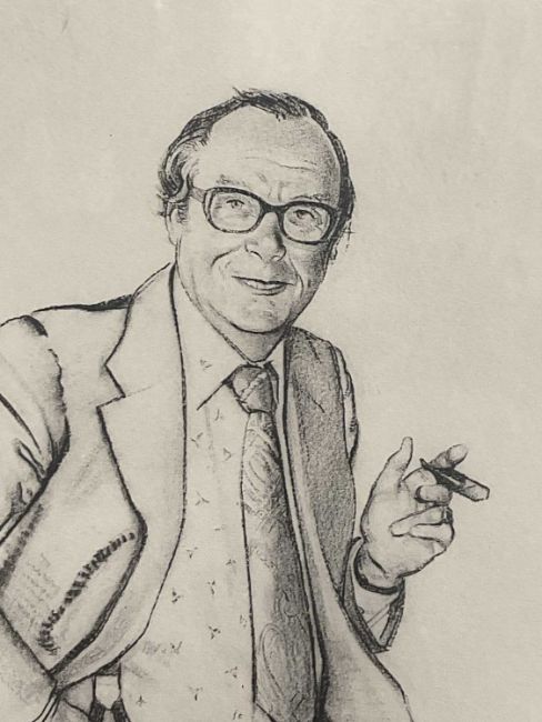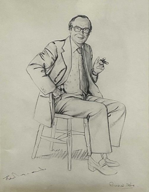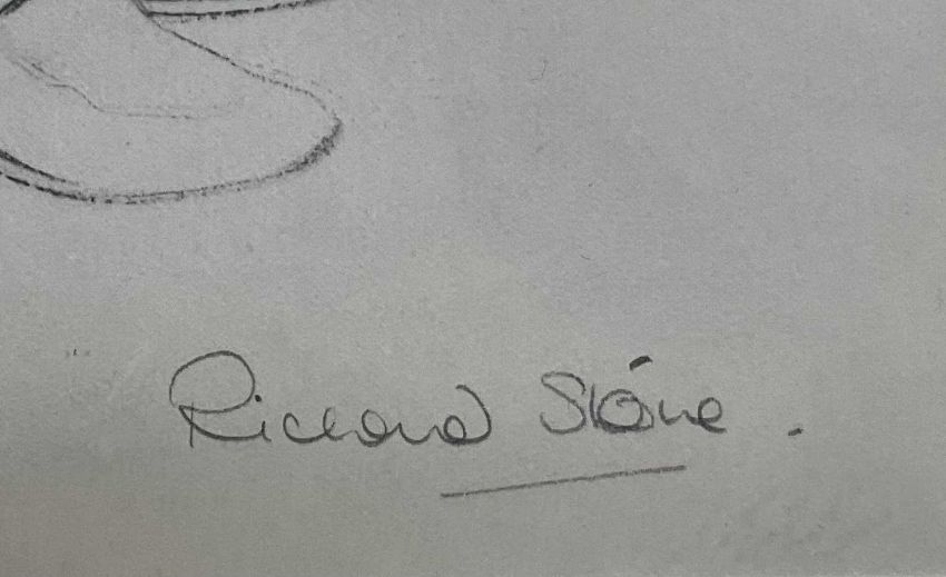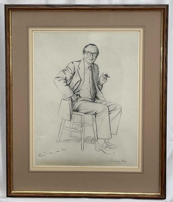 Richard Stone and Eric Morecambe signed and autographed lithograph - Pencil sketch for Portrait of Eric Morecambe, circa 1978, 44.5cm x 34.5cm, in glazed frame.
