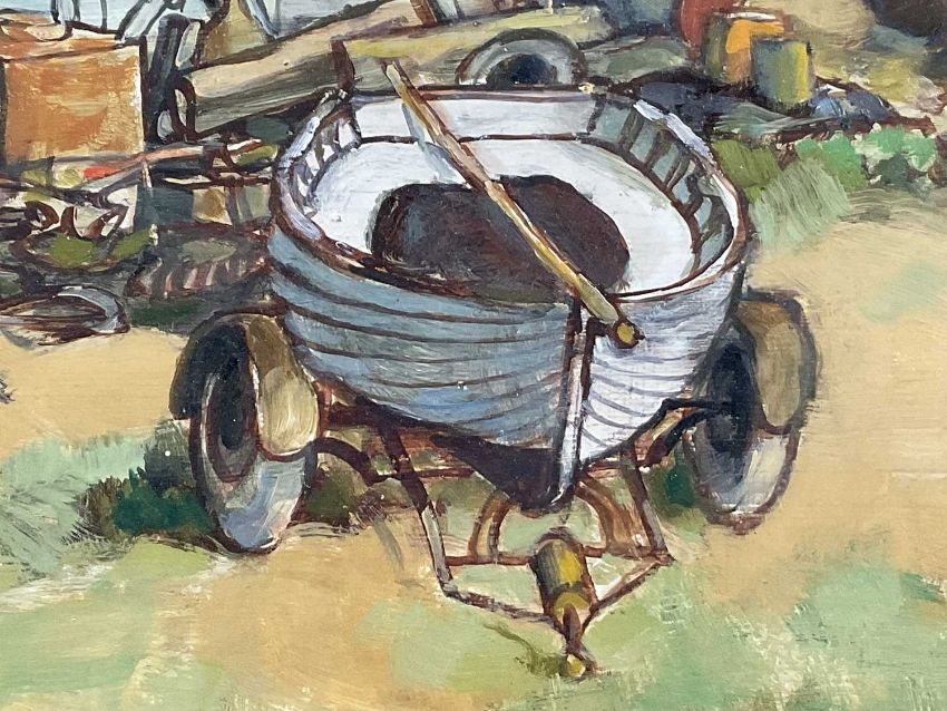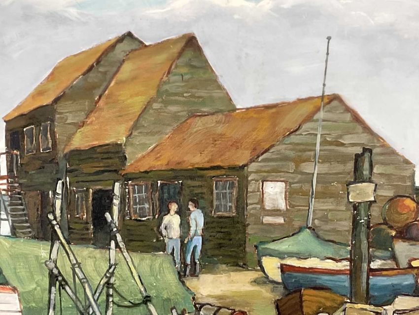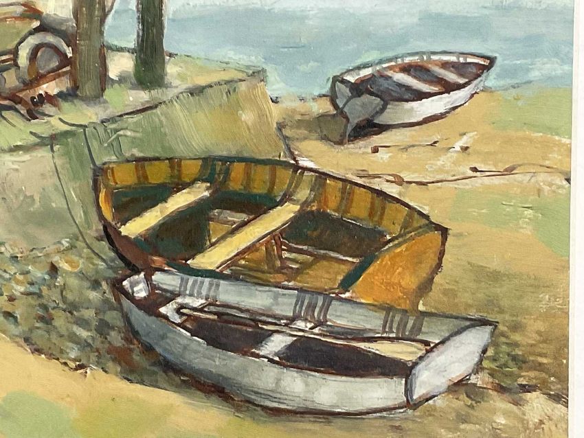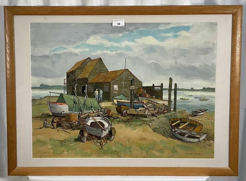Matthew Prater, contemporary, oil on board - The Boat Yard, signed, in glazed frame, 44cm x 59cm