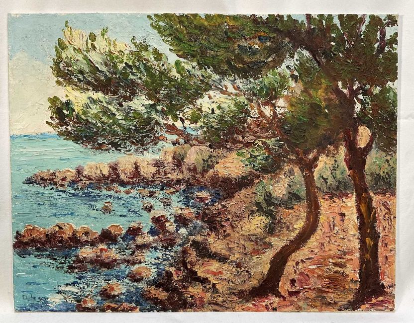 French school, 20th century oil on board, Ponte du Bacon, Antibes, signed lower left, 35x27cm