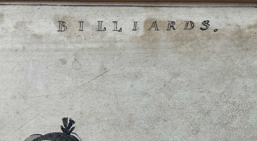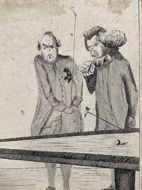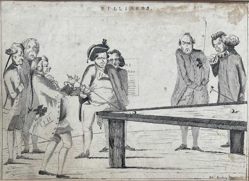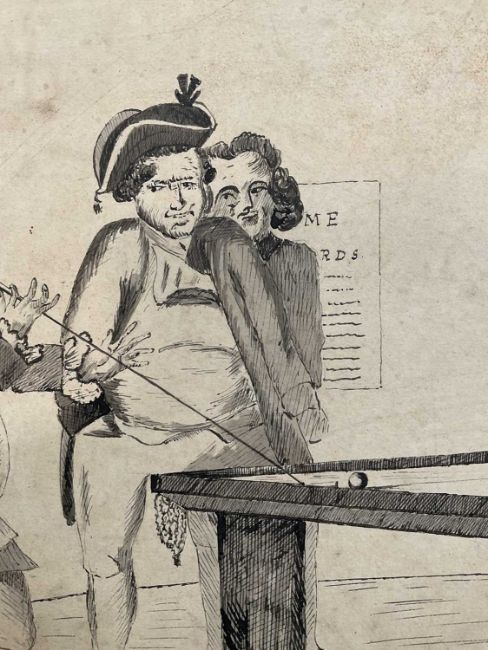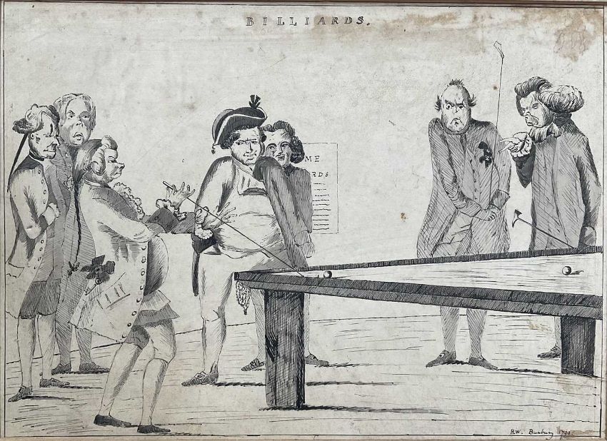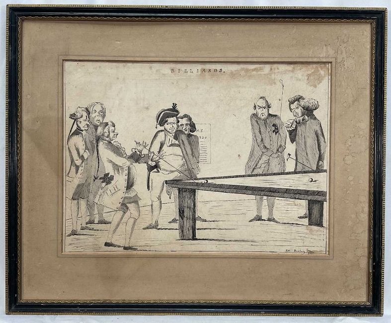 Manner of Henry William Bunbury (1750-1811) ink on paper - 'Billiards', with signature and date 1799, 26.5cm x 36.5cm, framed