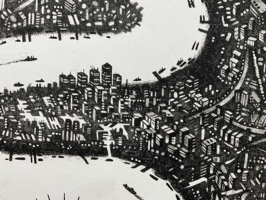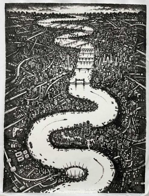 John Duffin (b. 1965) etching - Thames, signed titled and numbered 3/150, 75cm x 56cm, unframed