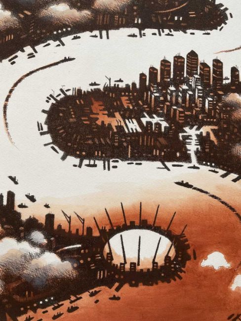 John Duffin (b. 1965) etching with watercolour - Thames Clouds, signed titled and numbered 7/100, 75cm x 56cm, unframed